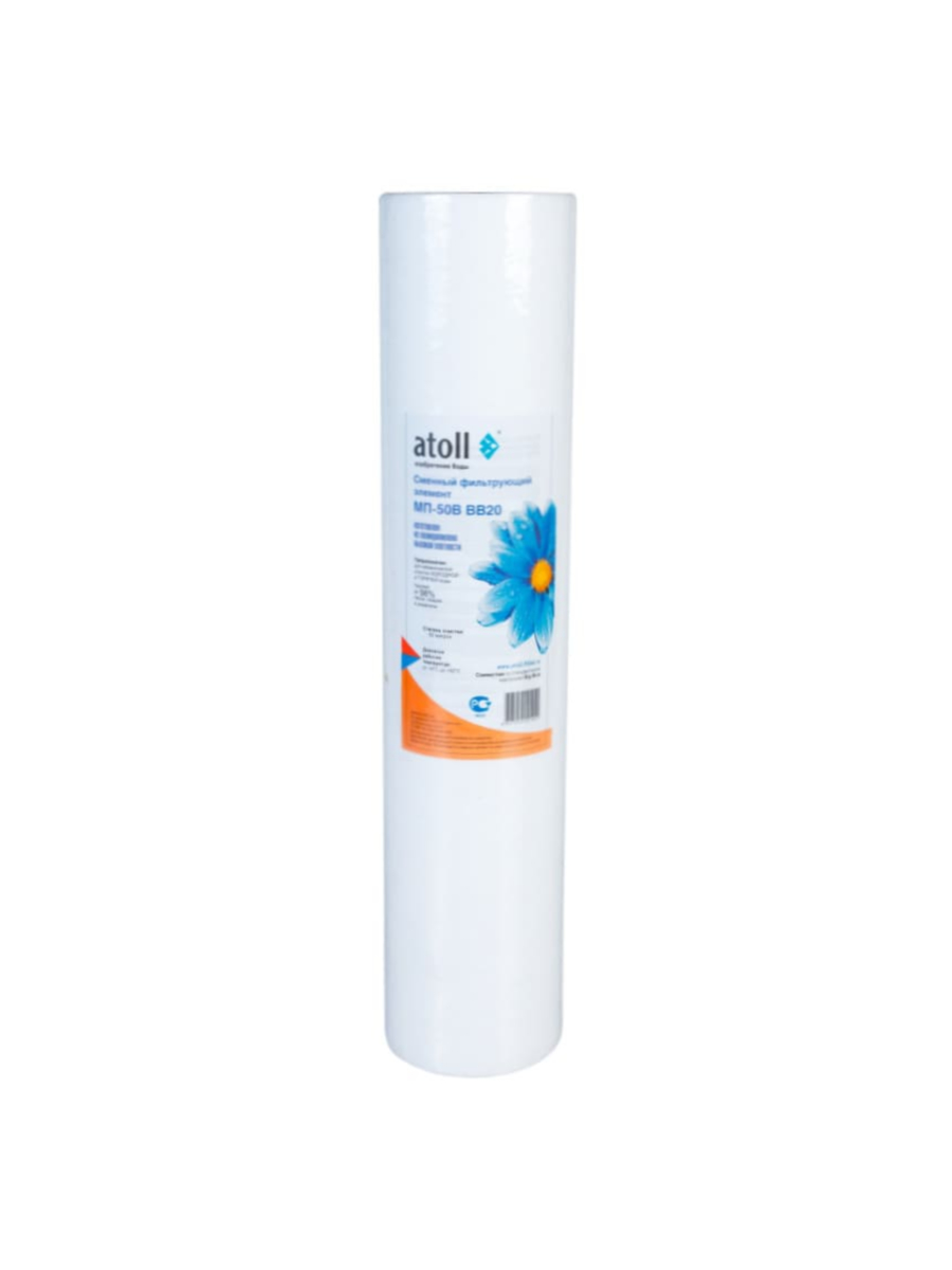 Картридж atoll МП-50В BB20 предназначен для фильтрации горячей и холодной воды от твердых частиц крупнее 50 микрон. Изготовлен из вспененного полипропилена, устойчивого к высоким температурам. Совместим с корпусами стандартного размера BB20, используемыми в бытовых и промышленных фильтрах.