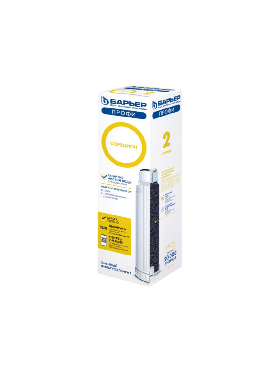 Сменный картридж Барьер Профи Сорбцион обеспечивает высокую степень очистки питьевой воды, устраняя посторонние запахи и неприятные привкусы.