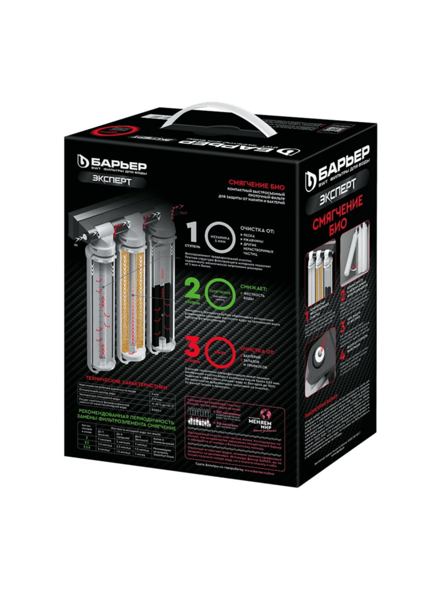 Подробная информация о технических характеристиках и особенностях эксплуатации фильтра Барьер Эксперт Смягчение Био доступна в прилагаемой инструкции.