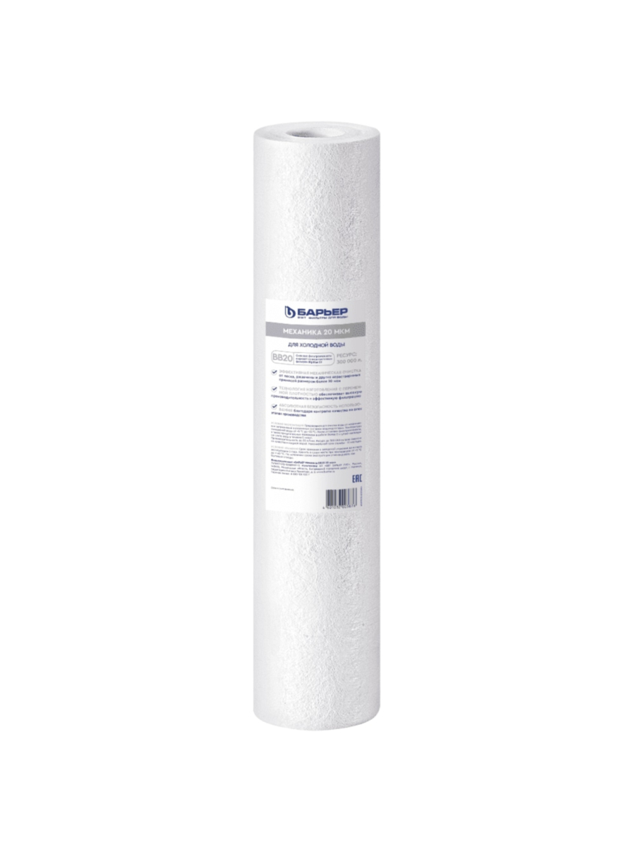 Картридж Барьер Механика 20 мкм BB20 — это эффективное решение для механической очистки холодной воды от крупных примесей. Изготовленный из вспененного полипропилена, он обеспечивает надежную защиту бытовой техники и сантехники от повреждений, вызванных твердыми частицами.