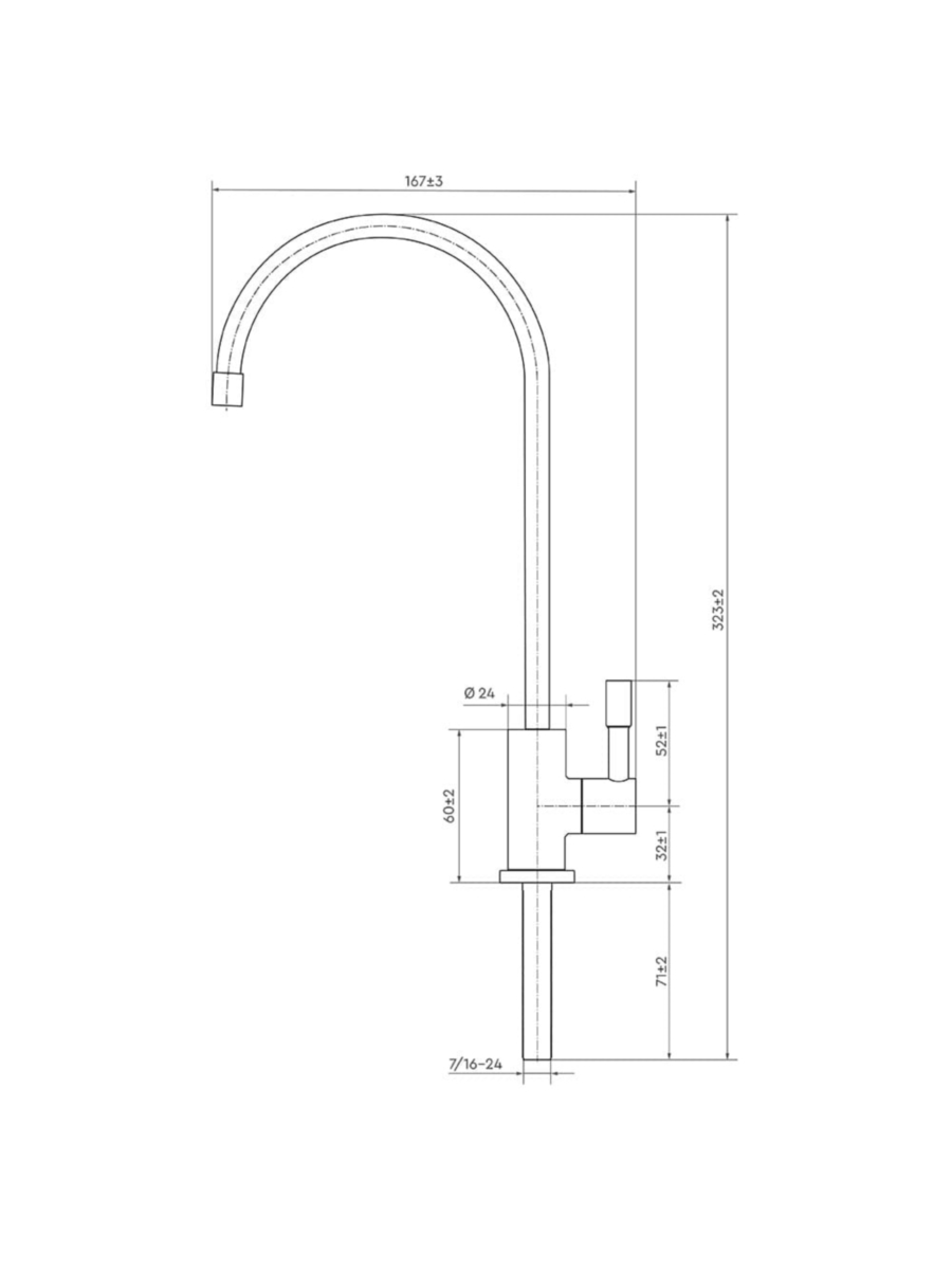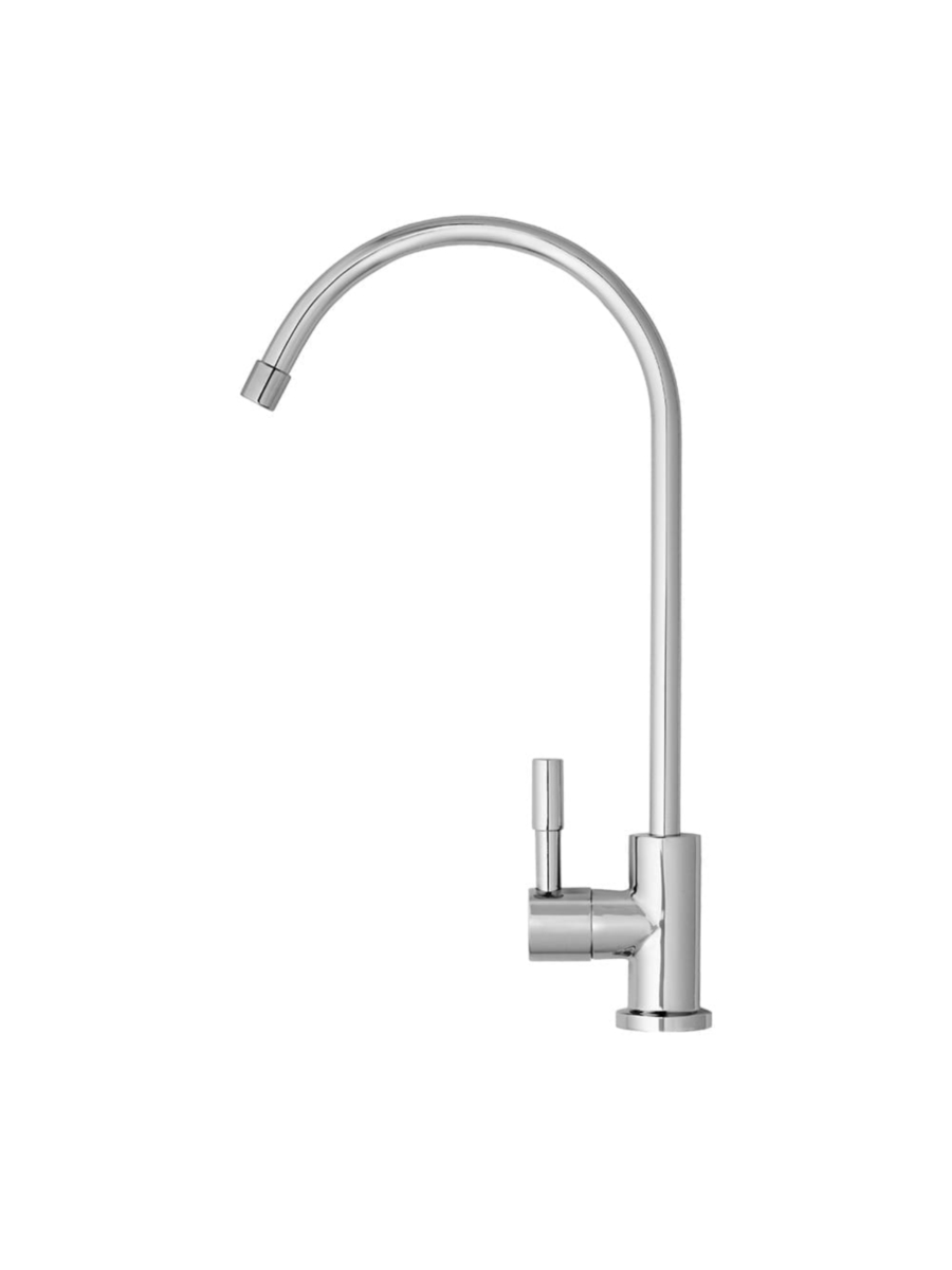 - Питьевой кран серебристого цвета для подачи чистой воды.