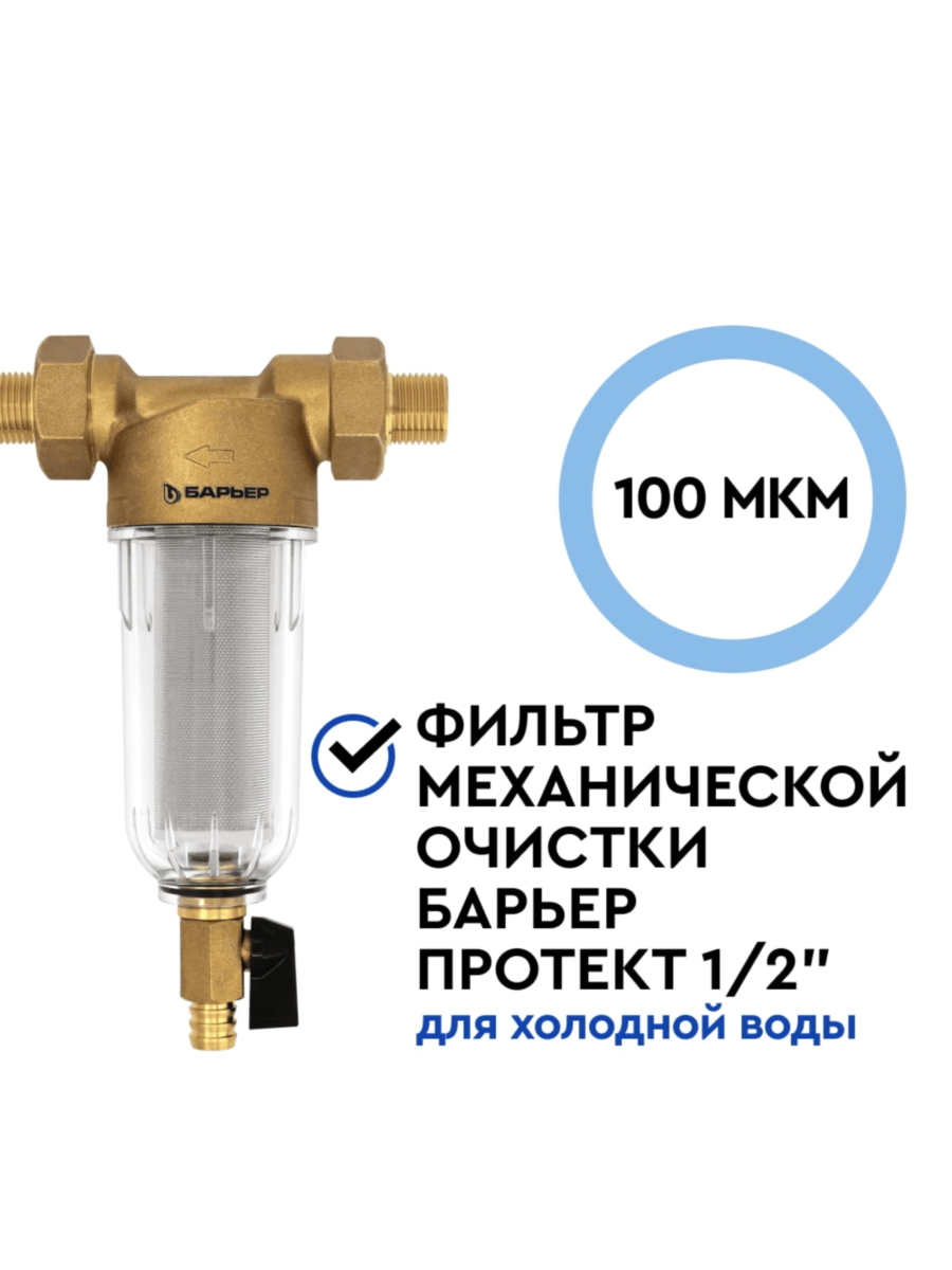 Магистральный проточный фильтр Барьер Протект 1/2 ХВС для защиты сантехники и бытовой техники