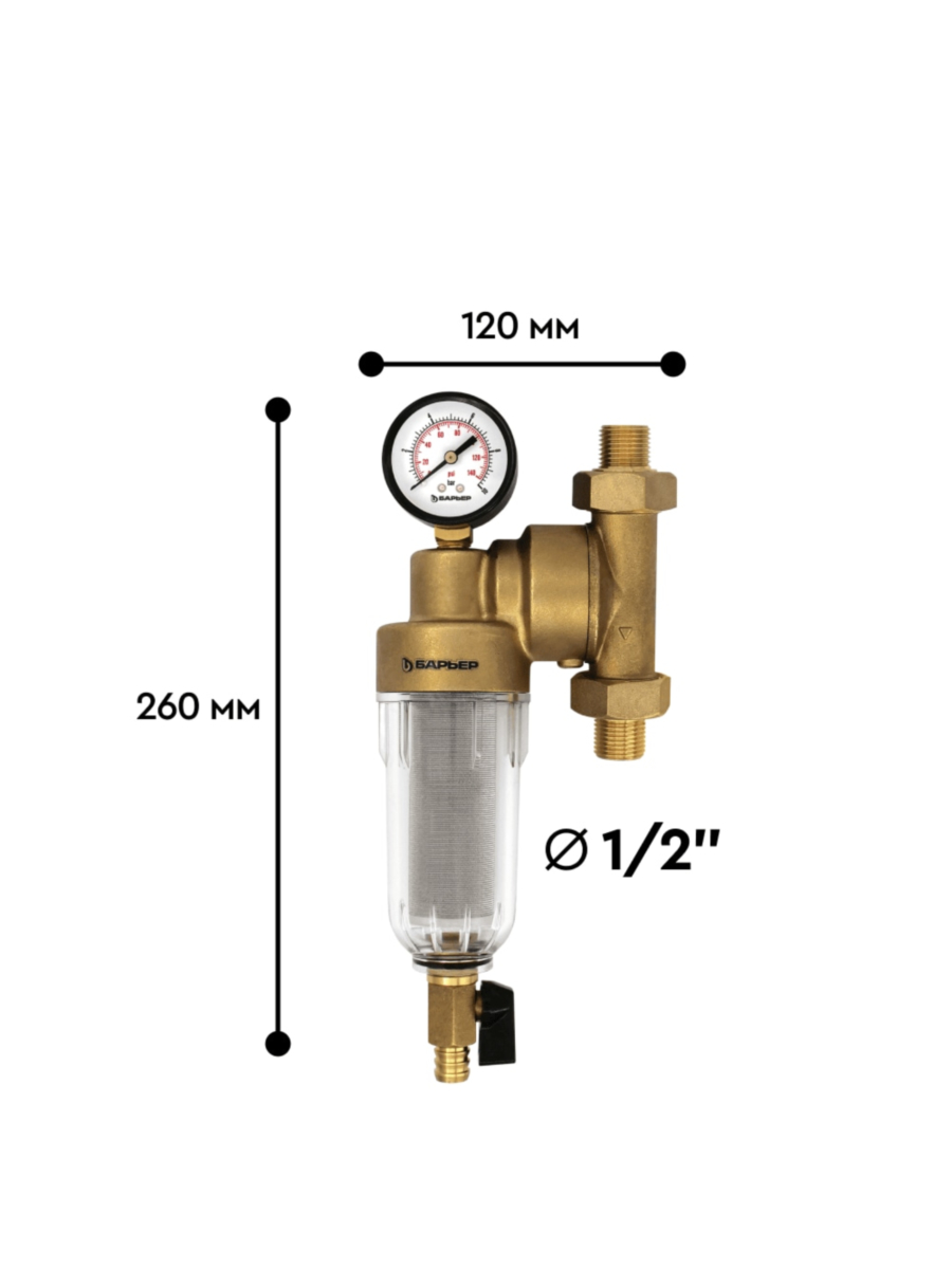 Магистральный фильтр Барьер Протект универсальный 1/2 ХВС с контролем давления