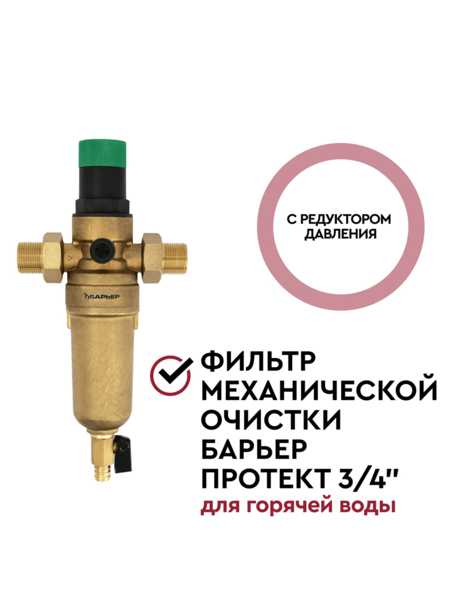 Магистральный фильтр Барьер Протект с редуктором давления 3/4 для горячей воды