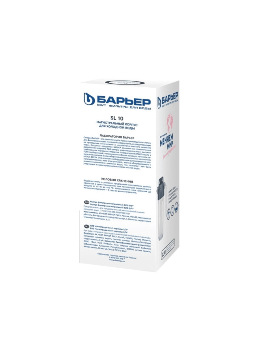 Корпус Барьер SL10 3/4 изготовлен из прочного прозрачного пластика и предназначен для установки сменных картриджей стандарта Slim Line 10.
