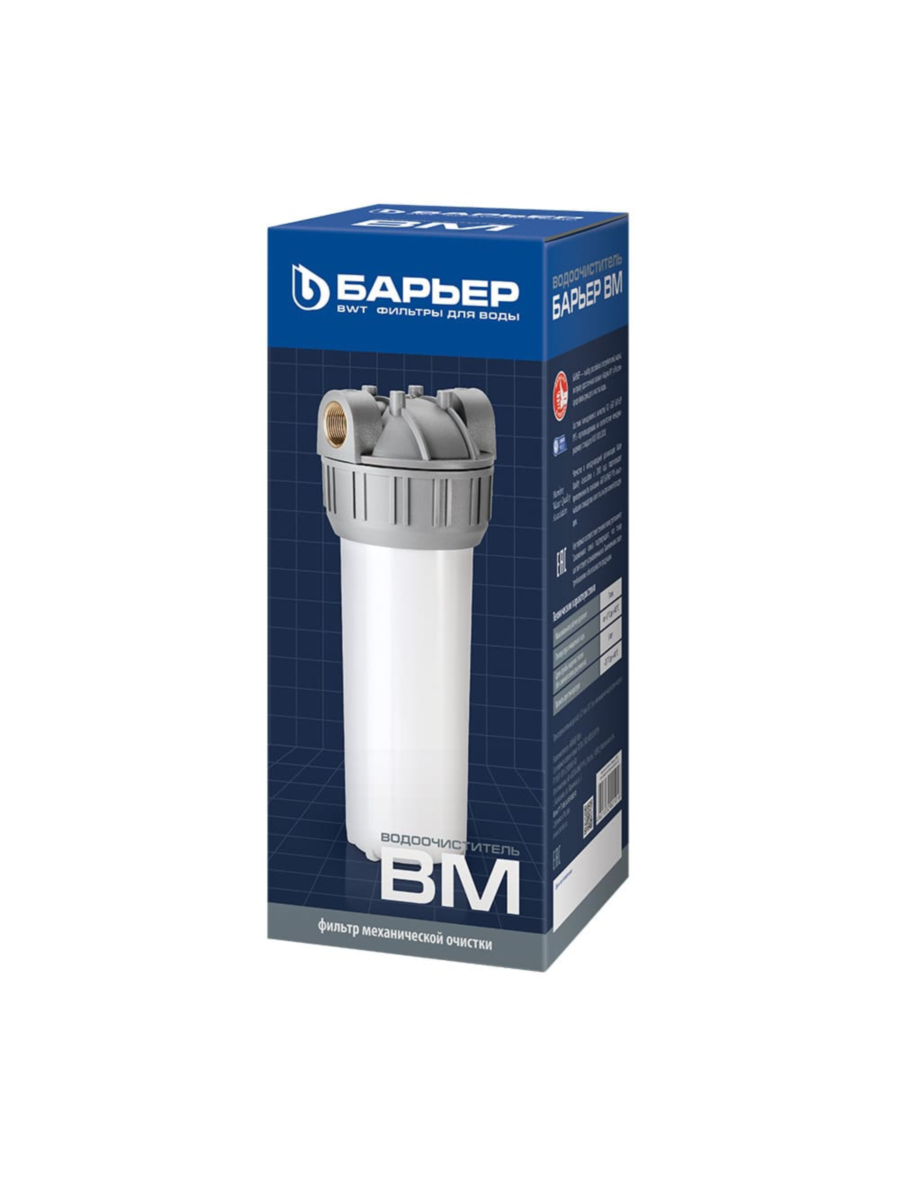 Подробная информация о монтаже и эксплуатационных требованиях фильтра Барьер ВМ 3/4 представлена в прилагаемой инструкции.