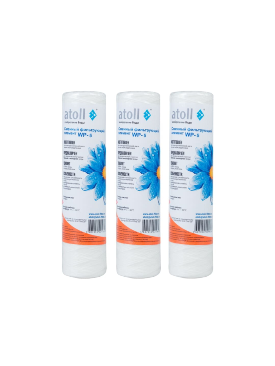 В набор Atoll №307 STDA входят три одинаковых картриджа механической очистки: