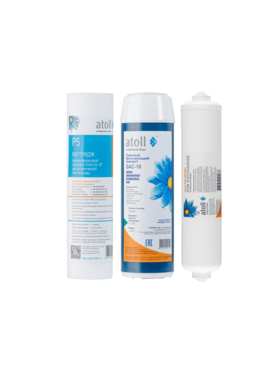Atoll №308 STDA – комплект картриджей для компактных трехступенчатых проточных фильтров