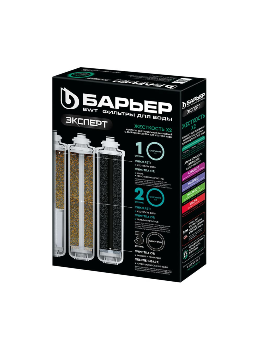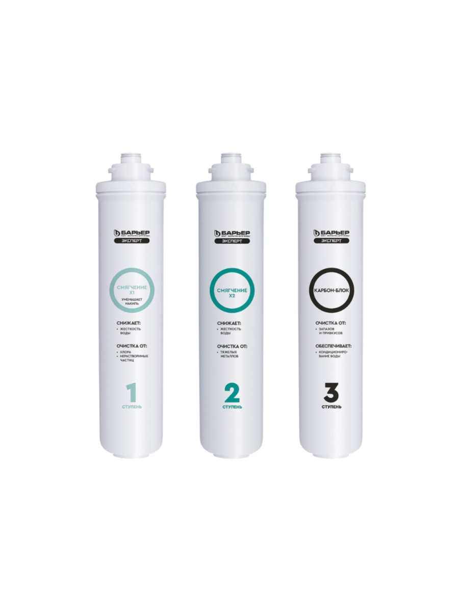 Набор Барьер Эксперт Жесткость (х2) предназначен для компактных фильтров серии Барьер Эксперт, обеспечивая эффективную очистку и смягчение воды. Сбалансированный подбор картриджей позволяет качественно удалять соли жесткости, вредные примеси и улучшать вкус воды.