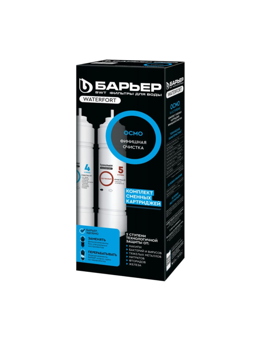 Набор картриджей Барьер WaterFort Осмо Финиш — это правильный выбор для тех, кто ценит здоровье и комфорт своей семьи, выбирая чистую и безопасную питьевую воду.