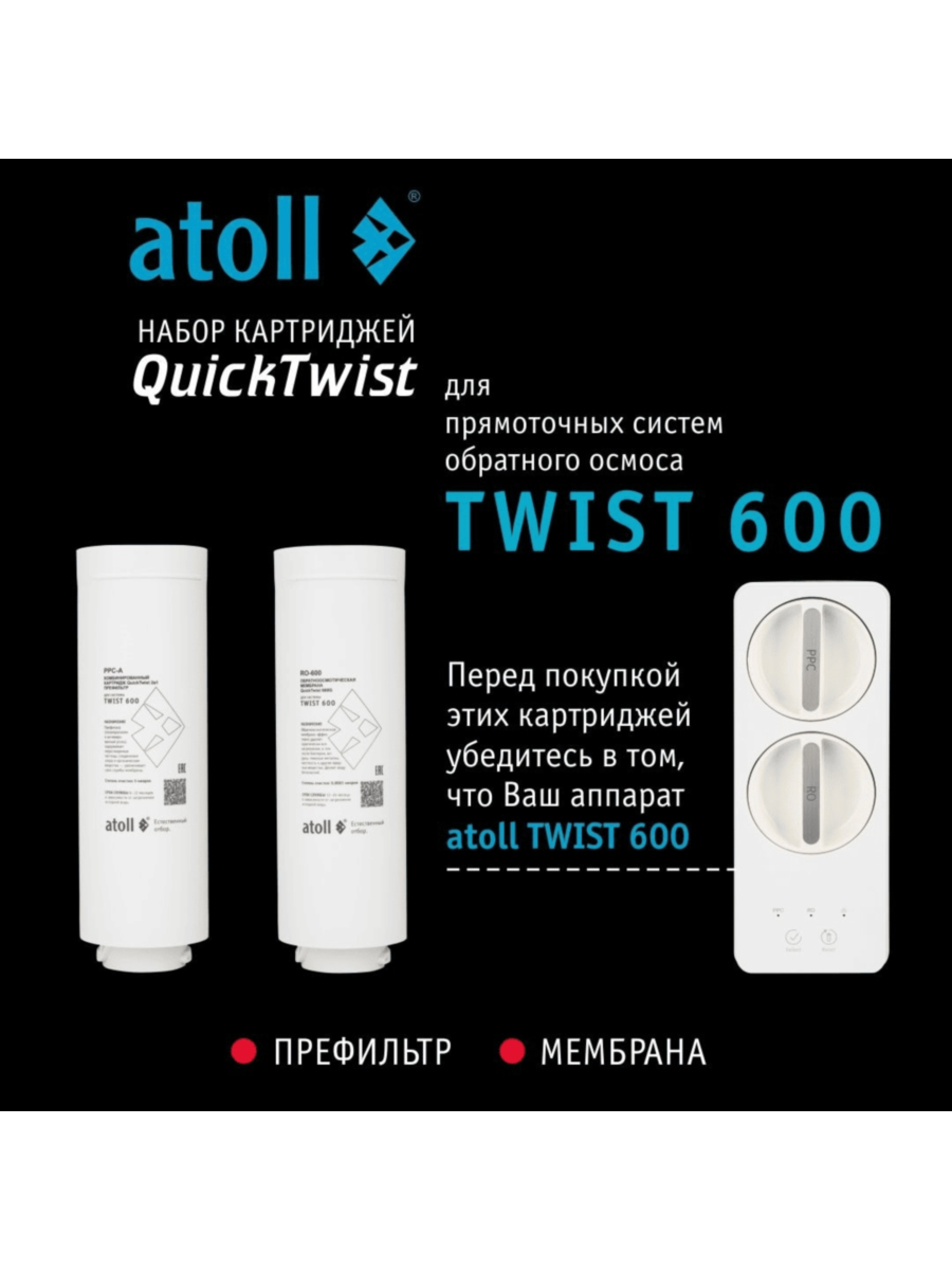Набор картриджей для atoll TWIST 600 (префильтр и мембрана)