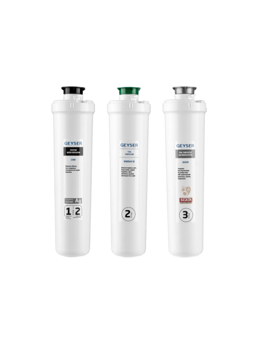 Комплект быстросъемных картриджей Гейзер для обслуживания компактной обратноосмотической системы Престиж Смарт