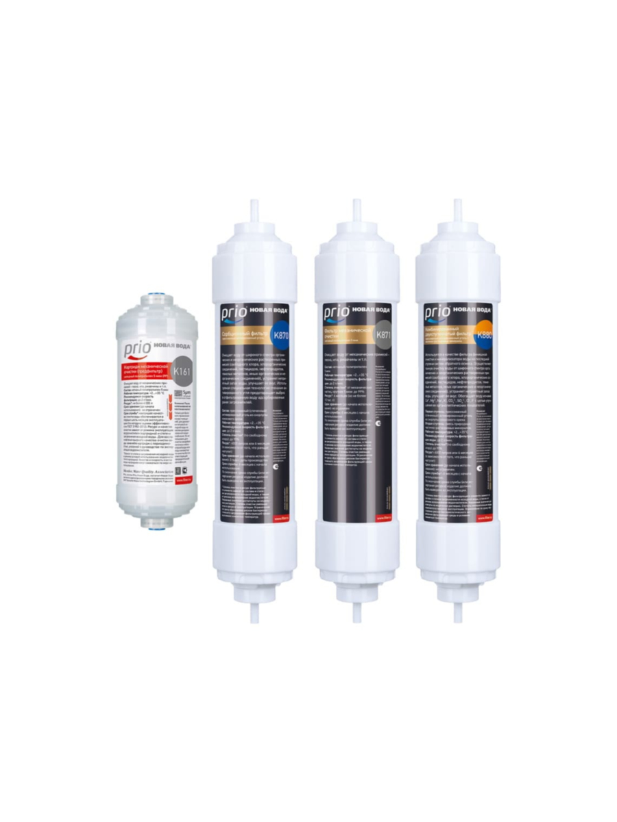 - Prio Новая Вода K870 — картридж тонкой механической очистки, удаляющий мелкие частицы и улучшая качество воды.