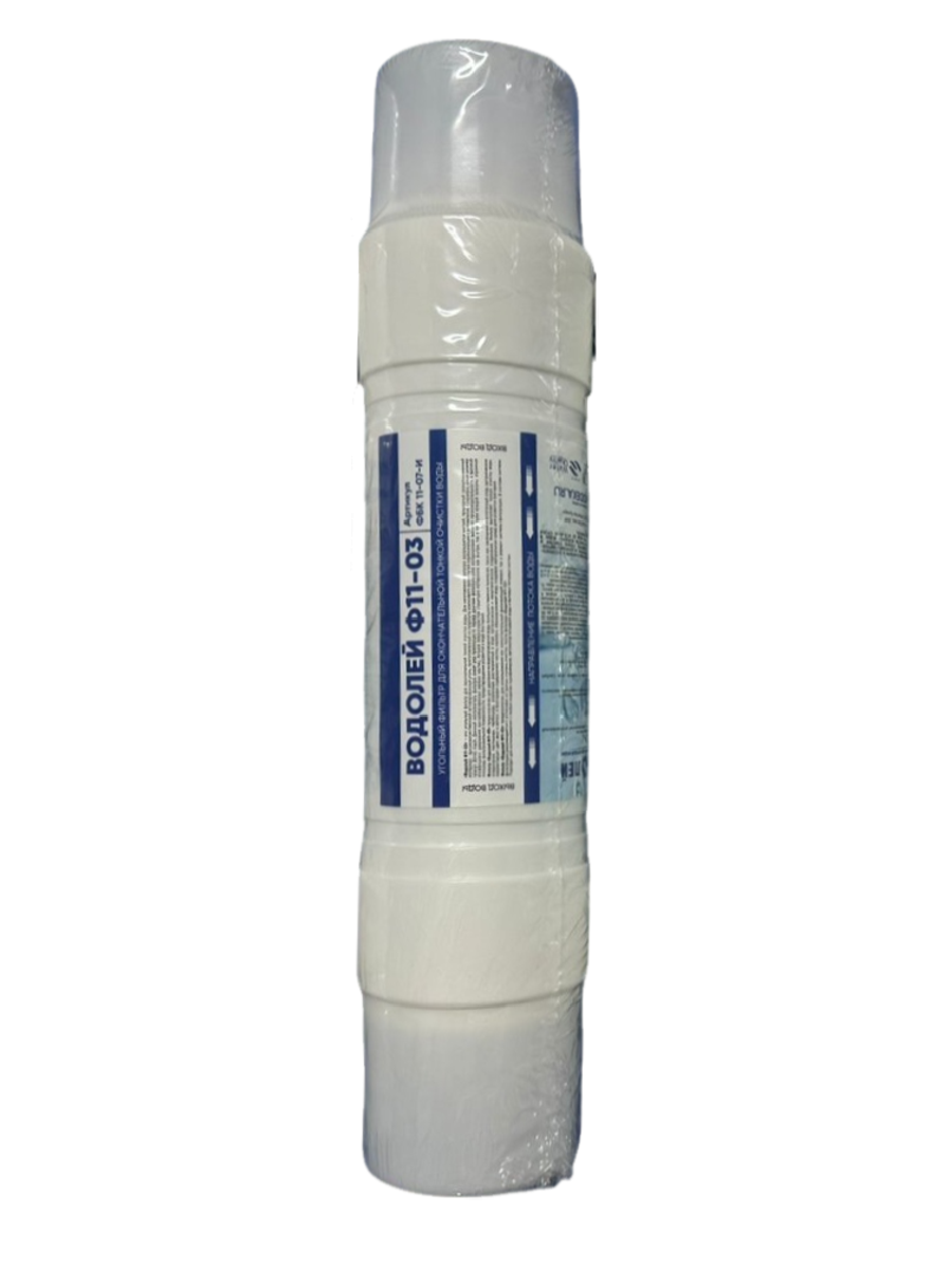 Фильтр «Водолей Ф11-03» предназначен для использования как самостоятельный фильтрующий элемент, так и элемент системы фильтрации. В составе системы фильтрации рекомендуется к установке на третью ступень очистки, после фильтра «Водолей Ф11-02».