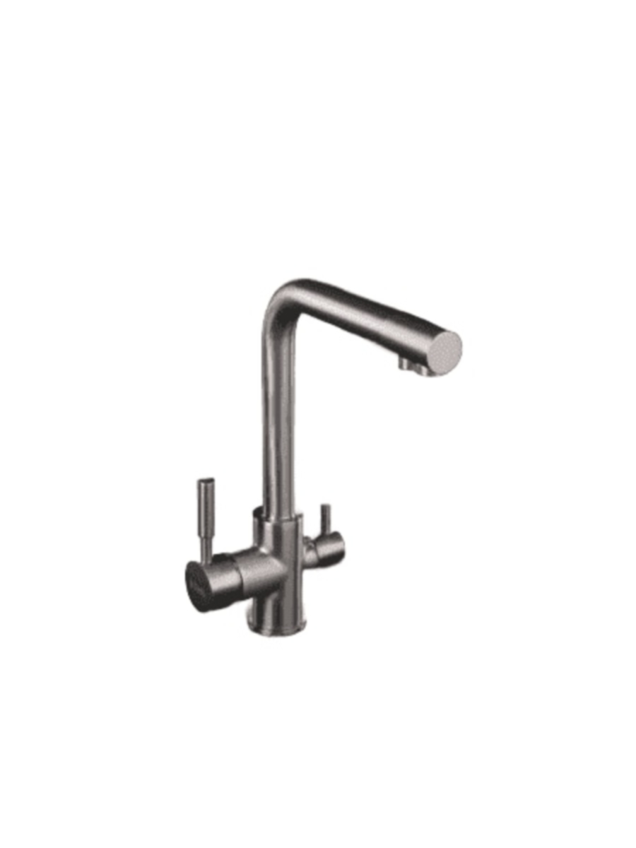 - двойная функциональность — один смеситель для двух типов воды (водопроводной и фильтрованной), что экономит место на кухне;