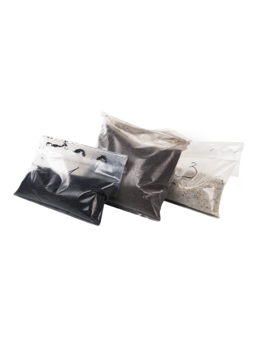 - Вторая стадия (пакет №2 посредине) — засыпка для физического отделения твердых примесей, таких как песок, глина и ил, снижая мутность и осветляя воду;