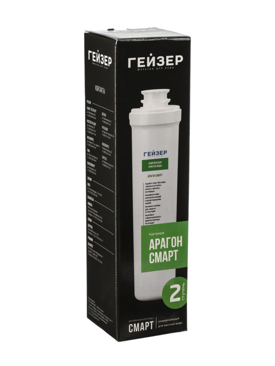 Картридж Арагон Смарт является обязательным элементом комплектации нескольких моделей питьевых фильтров Гейзер, в том числе: