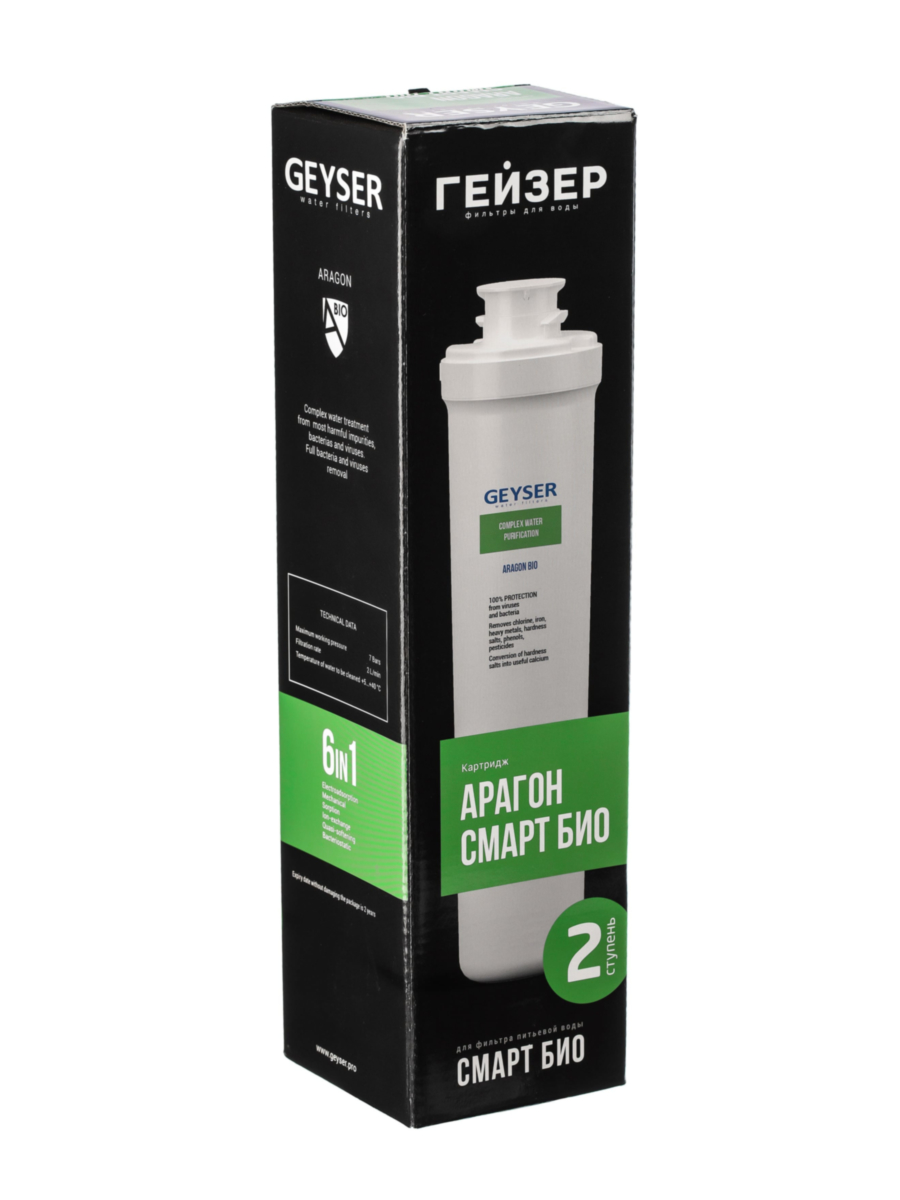 Сменный картридж Арагон Смарт Био входит в заводскую комплектацию фильтров Гейзер: