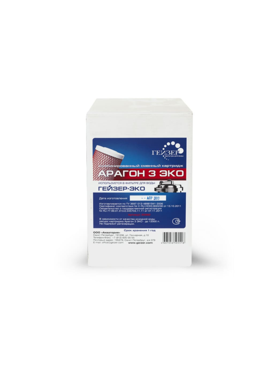 Типоразмер картриджа Арагон-3 Эко нестандартный и совместим исключительно с корпусом фильтра Гейзер Эко.