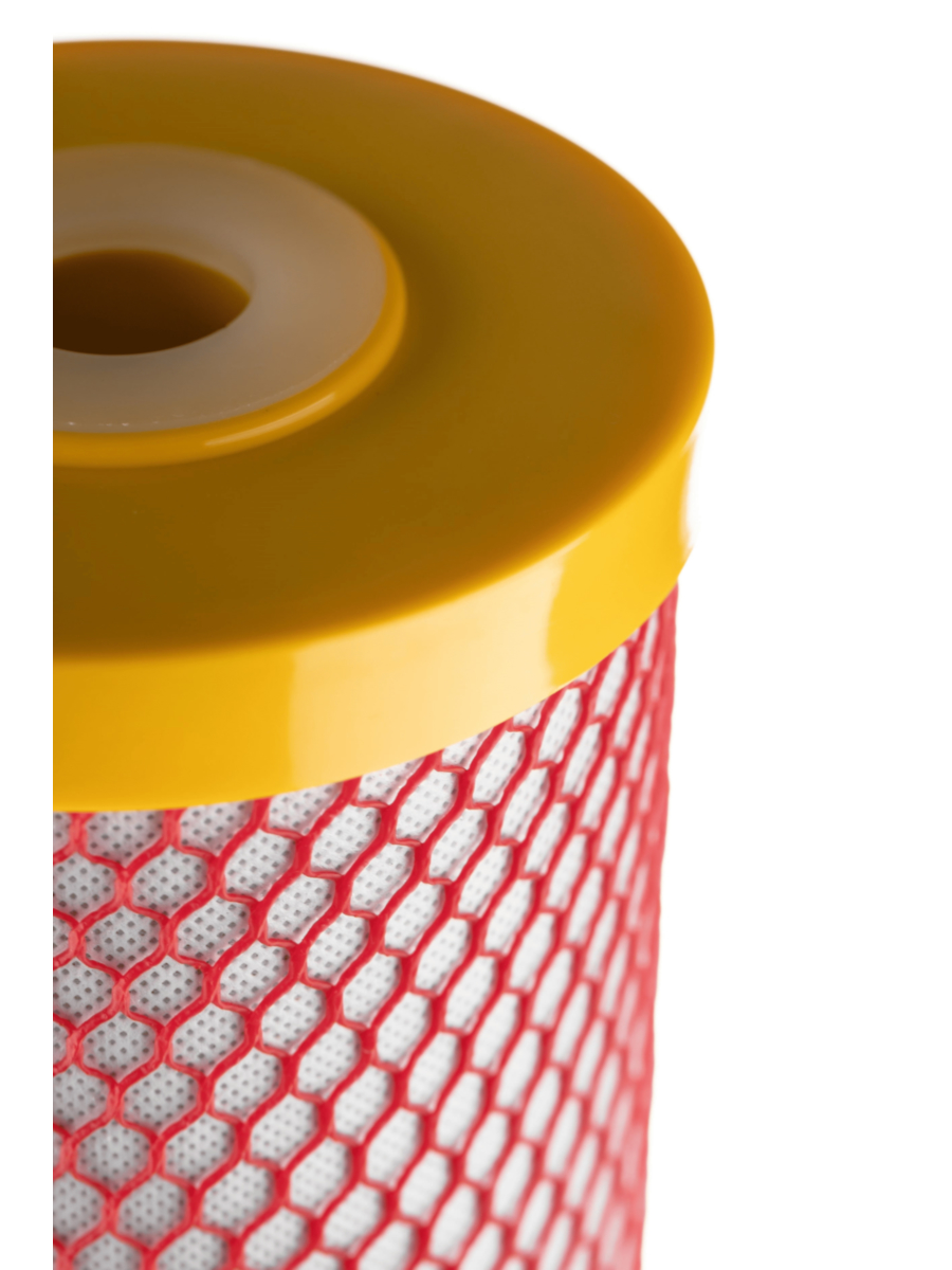 - Оболочка из пористого полипропилена эффективно задерживает крупные твердые частицы, защищая внутренние слои фильтрующего материала от преждевременного износа.