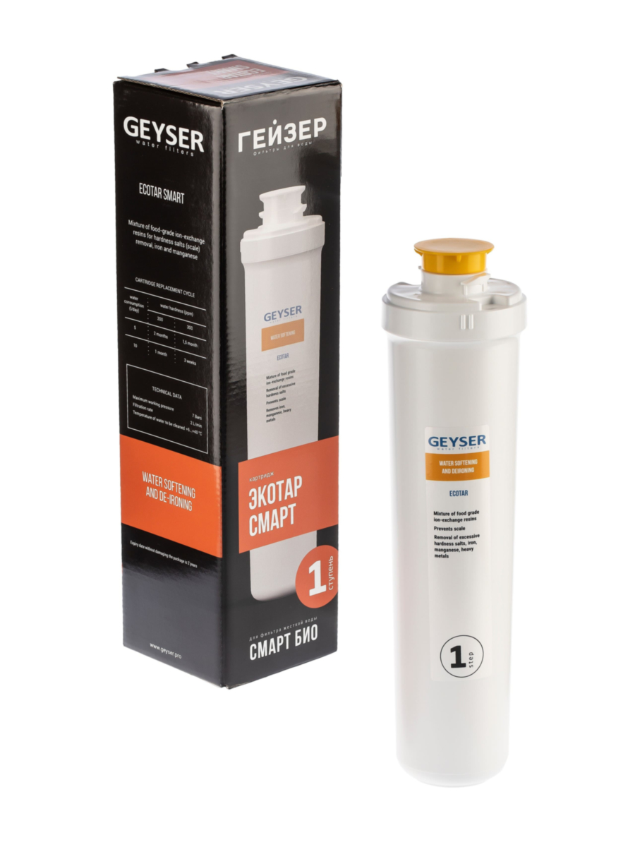 Сменный картридж Экотар Смарт используется в качестве первой ступени очистки в фильтре Гейзер: