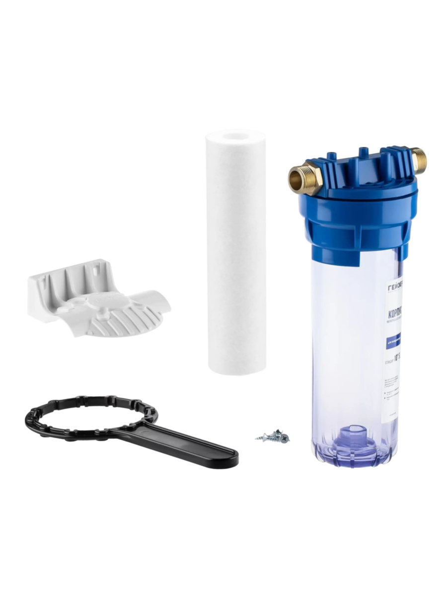 - Комплектуется полипропиленовым картриджем, который эффективно задерживает частицы загрязнений крупнее 5 микрон, такие как песок, ржавчина и другие механические примеси.