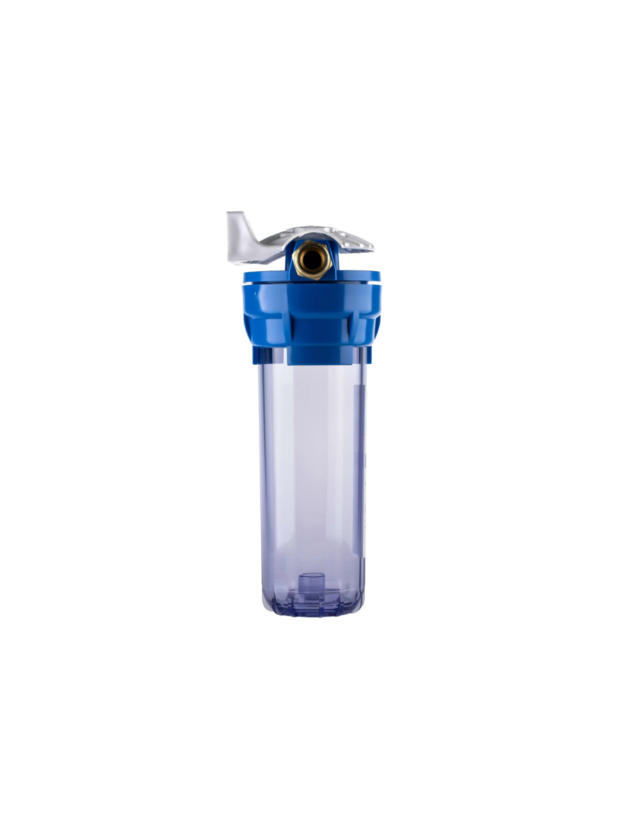 - Прозрачная колба позволяет визуально контролировать степень загрязнения картриджа, облегчая своевременную замену фильтрующего элемента.