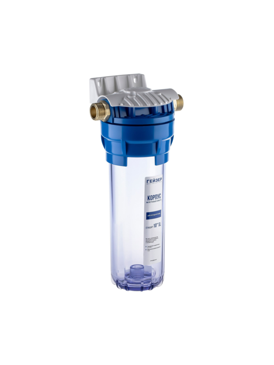 Магистральный фильтр Гейзер 1П 3/4 с прозрачной колбой предназначен для эффективной очистки холодной воды в домашних условиях.