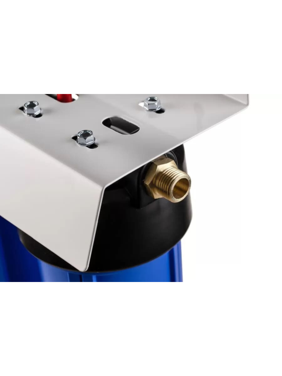 - Подключение фильтра к магистральной линии водоснабжения осуществляется через фитинги с наружной резьбой 3/4, установленные в крышке корпуса.