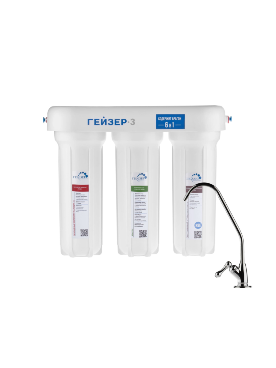 Гейзер-3 К Люкс оснащён тремя этапами очистки, выполняемыми специальными картриджами:
