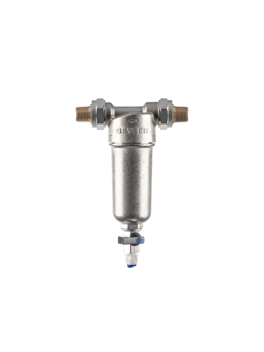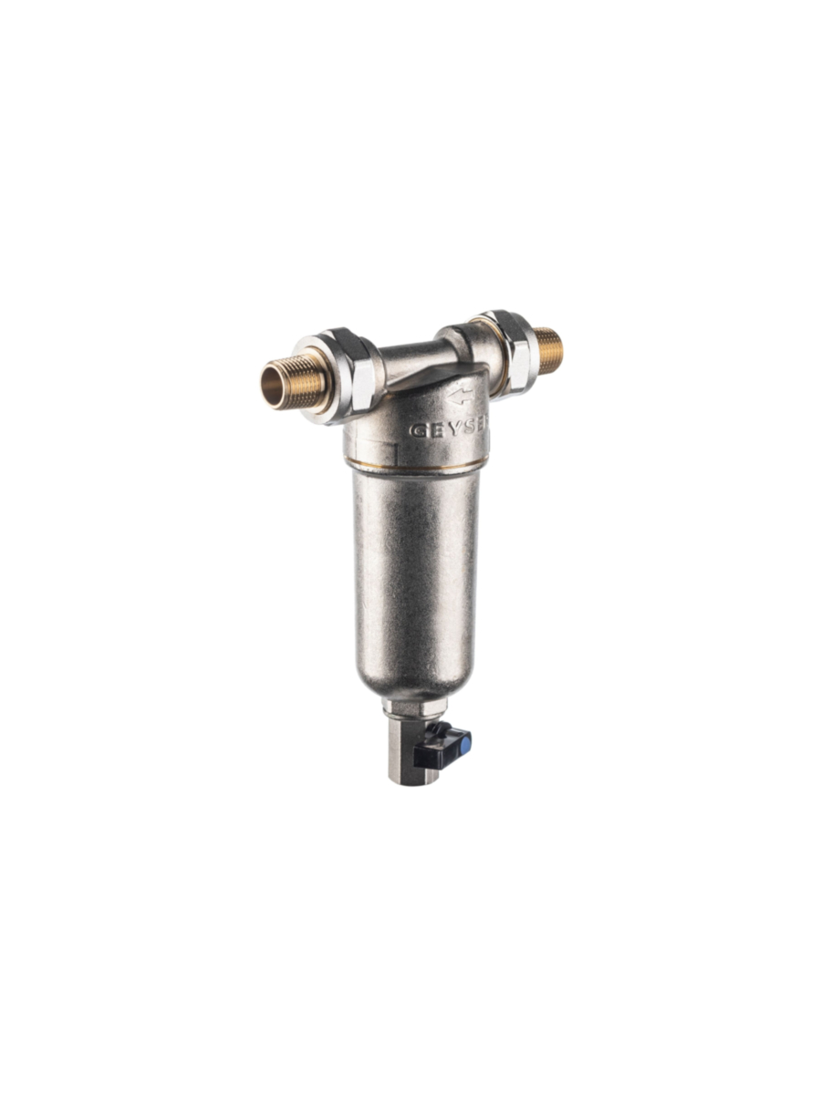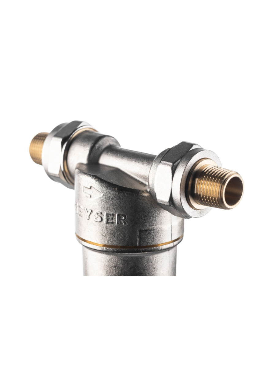 - Колба изготовлена из латуни, что позволяет фильтровать горячую воду температурой до +80°C, обеспечивая защиту отопительного и сантехнического оборудования от износа и засорения.