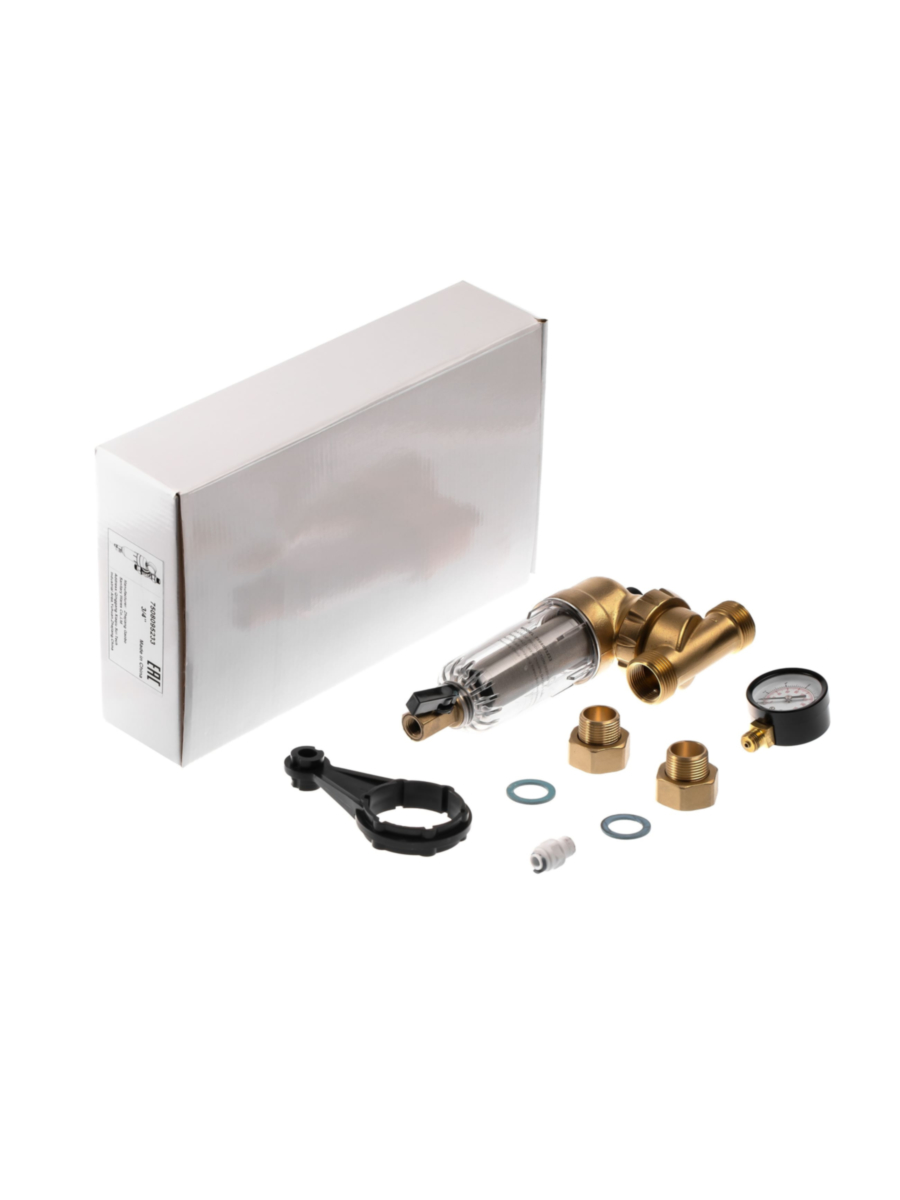 - Комплектуется радиальным манометром и фитингами с наружной резьбой 3/4 дюйма, что упрощает монтаж и подключение фильтра к водопроводу.