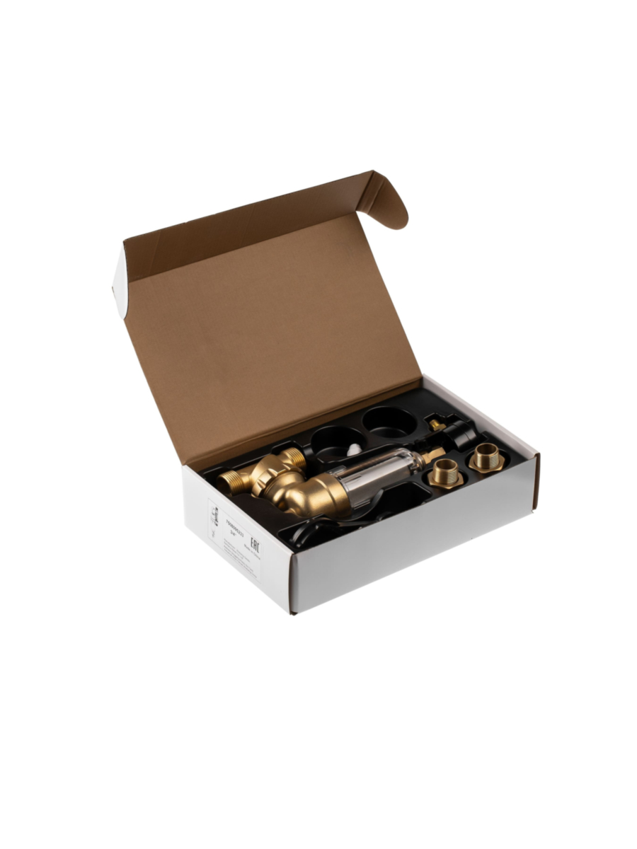 - Латунная колба обеспечивает устойчивость к температурам до +80°C, что позволяет использовать фильтр для фильтрации горячей воды.