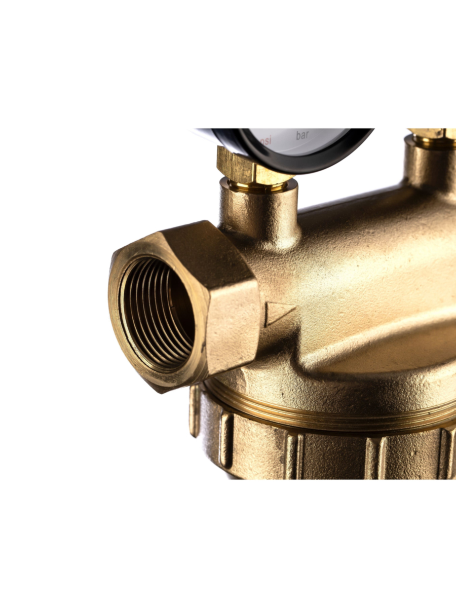 - Колба из латуни выдерживает рабочую температуру до +80°C, что позволяет использовать фильтр для очистки горячей воды, защищая котельное и сантехническое оборудование от повреждения.