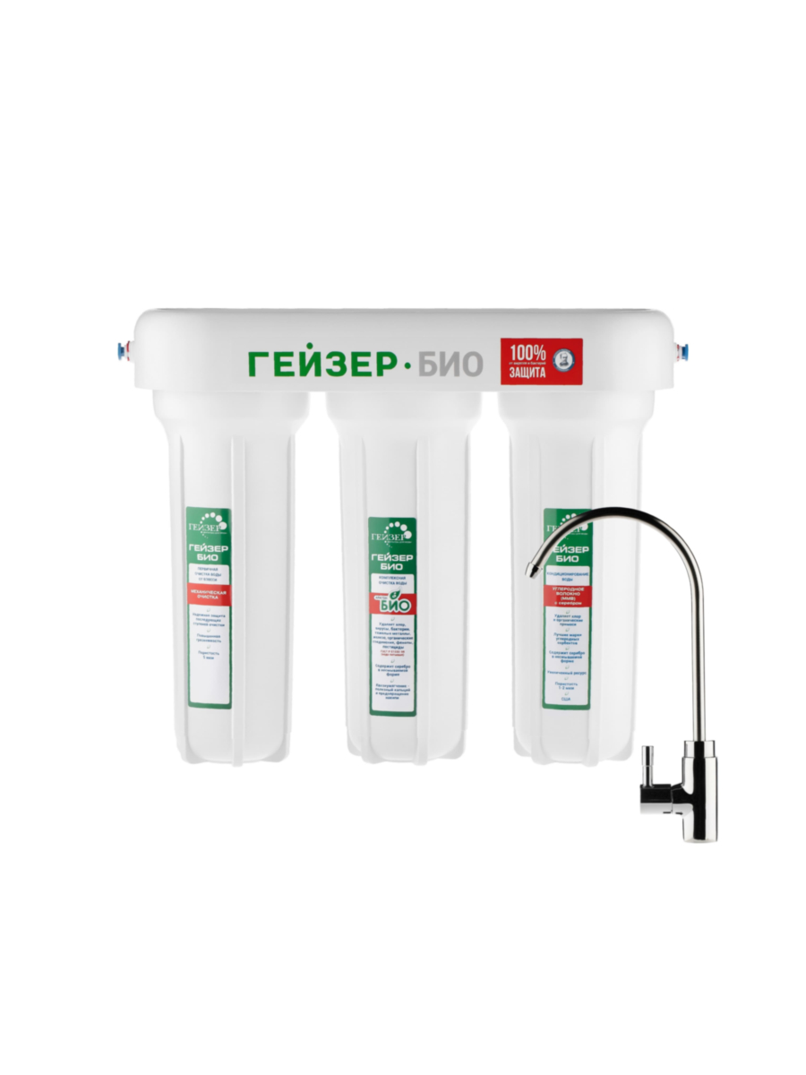 Гейзер БИО 321 — это эффективное решение для глубокой очистки питьевой воды, направленное на борьбу с последствиями высокой жесткости. Трехступенчатая система обеспечивает полную очистку воды от вирусов, избыточных солей жесткости и других вредных примесей, делая воду безопасной и комфортной для употребления.