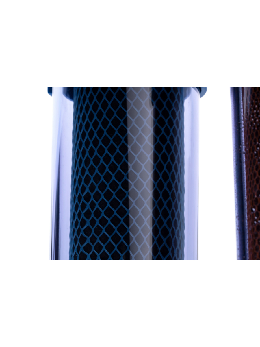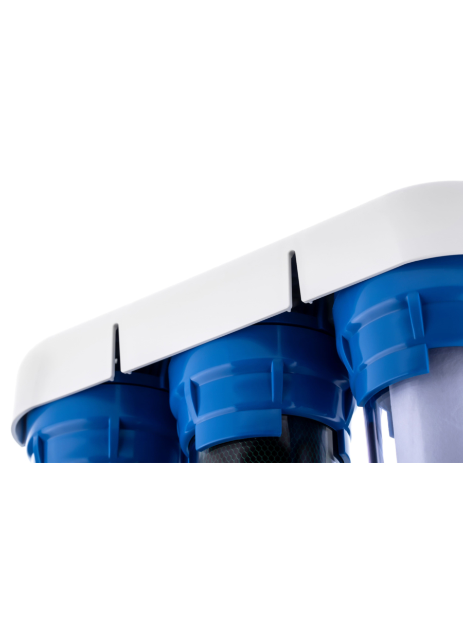 - Прозрачные пластиковые колбы позволяют визуально оценивать степень загрязнения фильтрующих элементов и своевременно осуществлять их замену.