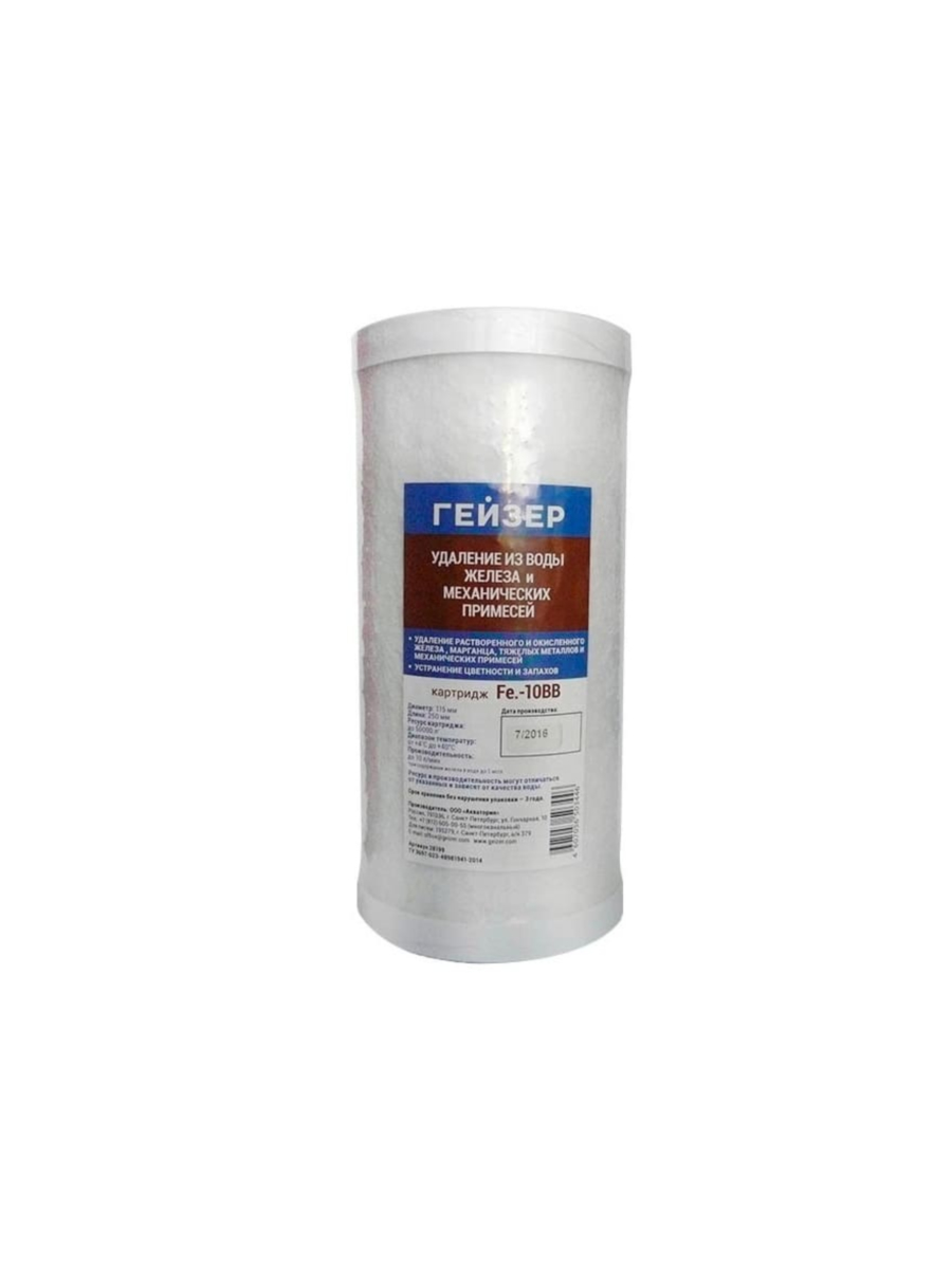 Гейзер Fe.-10BB — это высококачественный сорбционно-обезжелезивающий картридж, очищающий воду поэтапно, используя несколько фильтрующих материалов для достижения наилучшего результата.