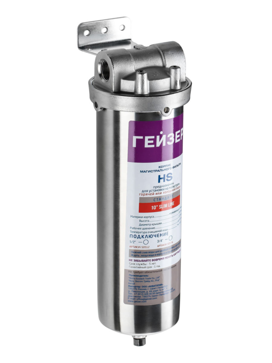 Корпус Гейзер HS-10SL 1/2 выполнен из высококачественной нержавеющей стали и предназначен для фильтрации горячей или холодной воды. Корпус совместим с фильтрующими картриджами стандартного размера Slim Line 10, что обеспечивает универсальность и доступность сменных элементов.