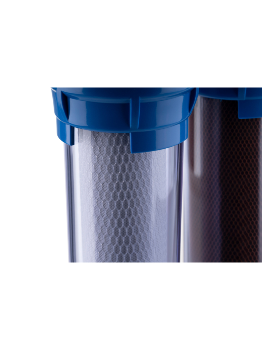 - Видимая степень загрязнения фильтрующих элементов позволяет вовремя заметить необходимость замены, обеспечивая постоянную чистоту воды.