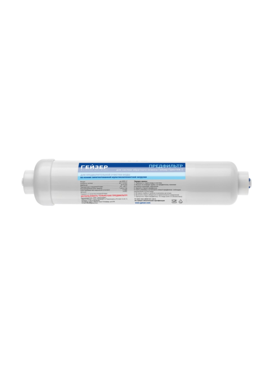 Гейзер Предфильтр — это первый этап очистки воды в системах обратного осмоса, предназначенный для удаления крупных примесей и улучшения качества питьевой воды. Удобное быстросъемное соединение и длительный срок службы делают его идеальным выбором для современных фильтров.