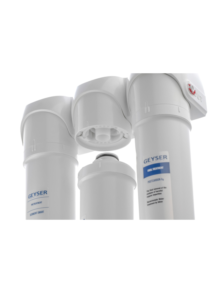 - Система состоит из трех фильтрующих элементов: механического и двух сорбционных картриджей с быстродействующей системой замка Quick Lock.