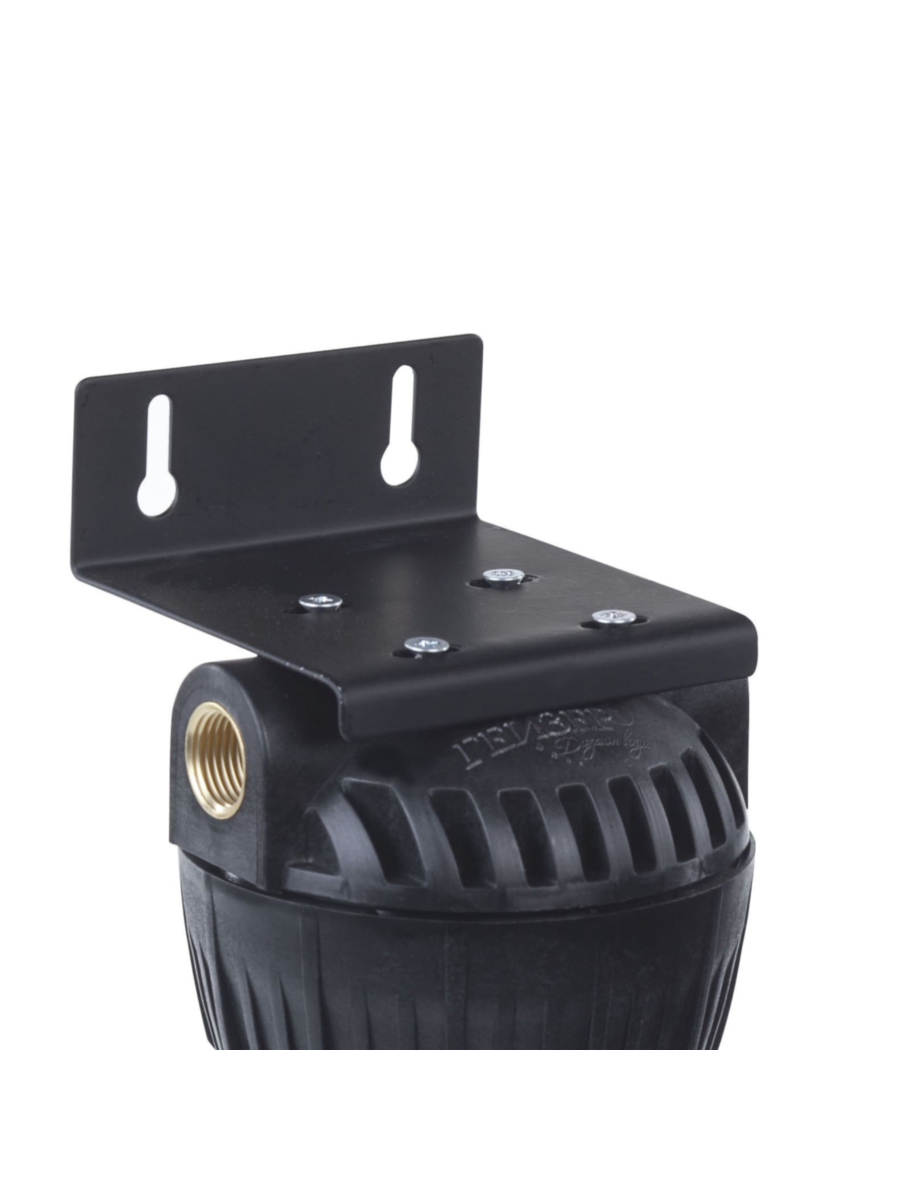 - В комплект поставки входят пластиковые скобы для удобного настенного монтажа и специальный ключ для снятия колбы, что упрощает процесс замены фильтрующего элемента.