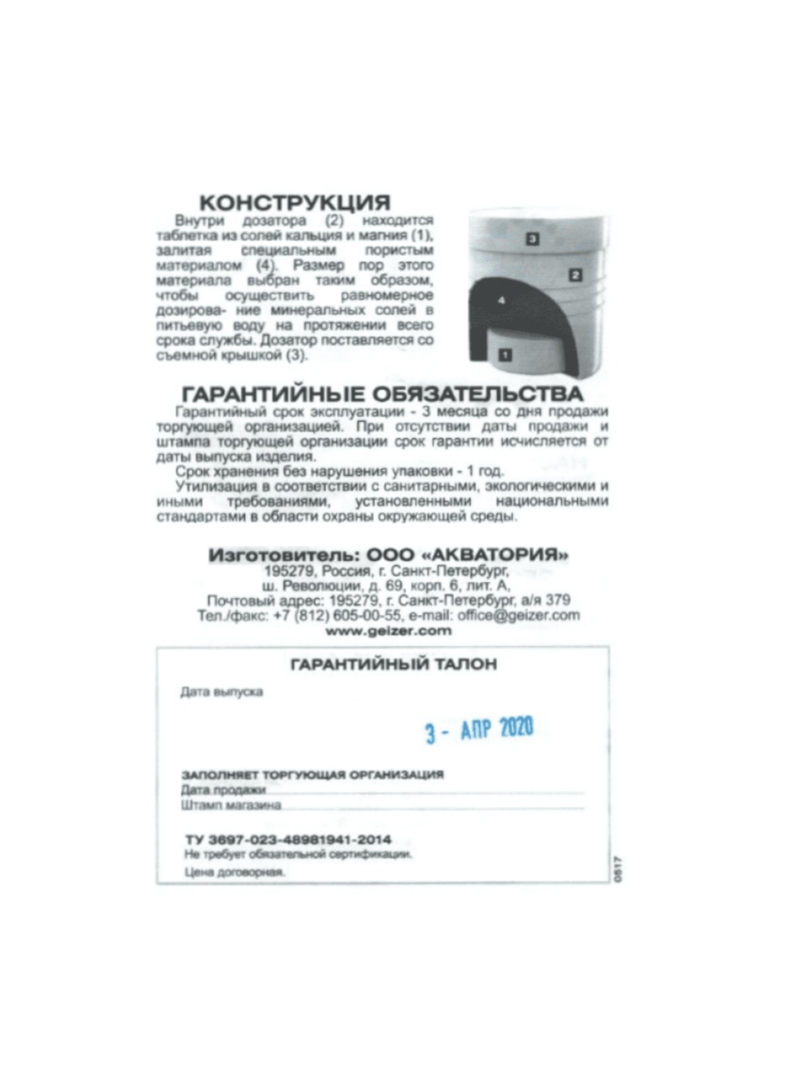 - Для предотвращения подъема минерализатора вверх рекомендуется сверху дополнить установку специальной вставкой-ограничителем Гейзер-В.