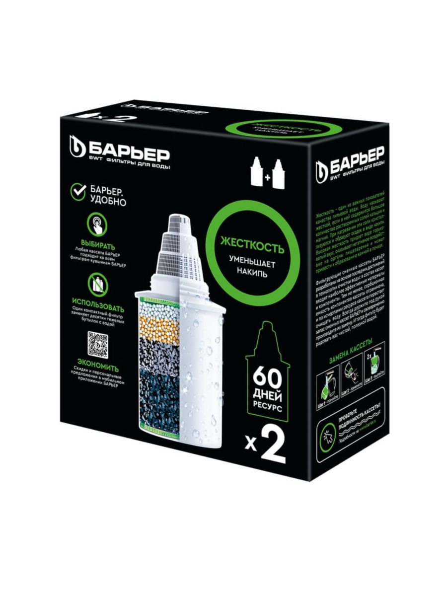Выбирайте набор из двух сменных картриджей Жесткость от Барьер и наслаждайтесь чистой, вкусной и полезной водой каждый день!