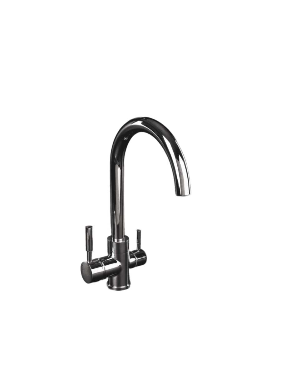 - двойная функциональность — один смеситель для двух типов воды (водопроводной и фильтрованной), что экономит место на кухне;