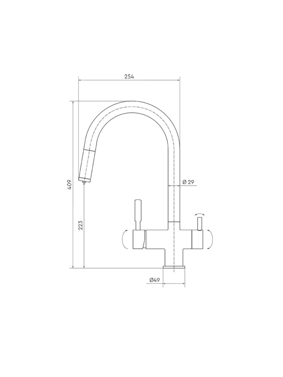 - Комбинированный тип крана, позволяющий свободно смешивать горячую и холодную воду, а также перенаправлять воду из фильтра;