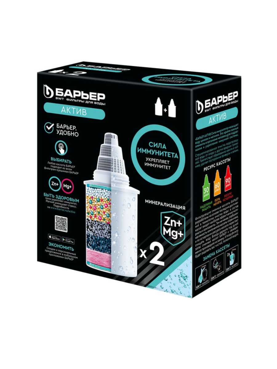 Выбирайте набор из двух сменных картриджей Актив Сила Иммунитета от Барьер и наслаждайтесь чистой, вкусной и полезной водой каждый день!