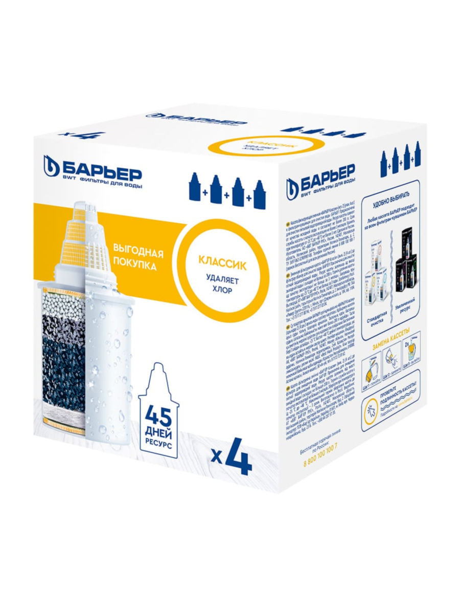 Выбирайте набор из четырёх сменных картриджей Классик от Барьер и наслаждайтесь чистой и безопасной водой каждый день!