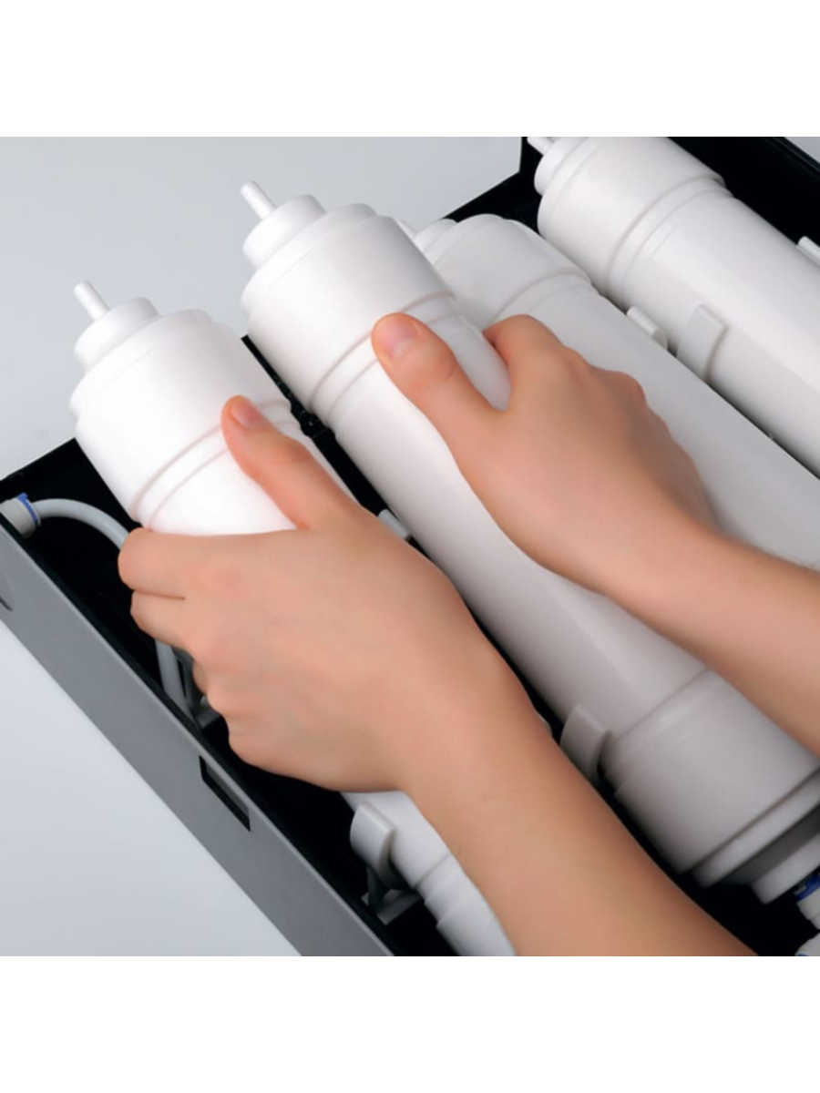Поскольку у каждого картриджа различный номинальный ресурс, рекомендуется их замена не реже одного раза в 6 месяцев для поддержания эффективности фильтрации.