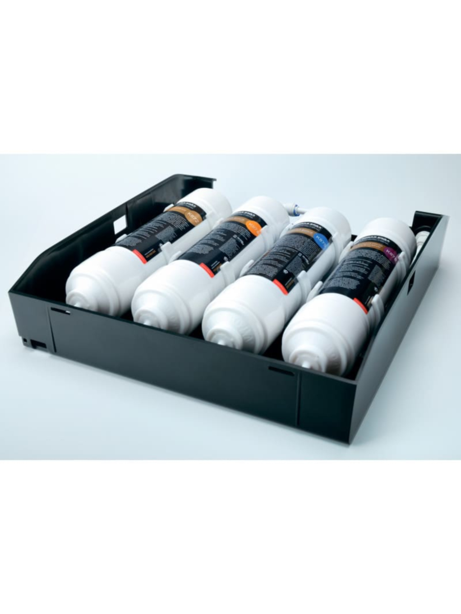 - Оснащён двумя сорбционными, одним умягчающим и одним ультрафильтрационным картриджами, работающими в комплексе для полной очистки воды.